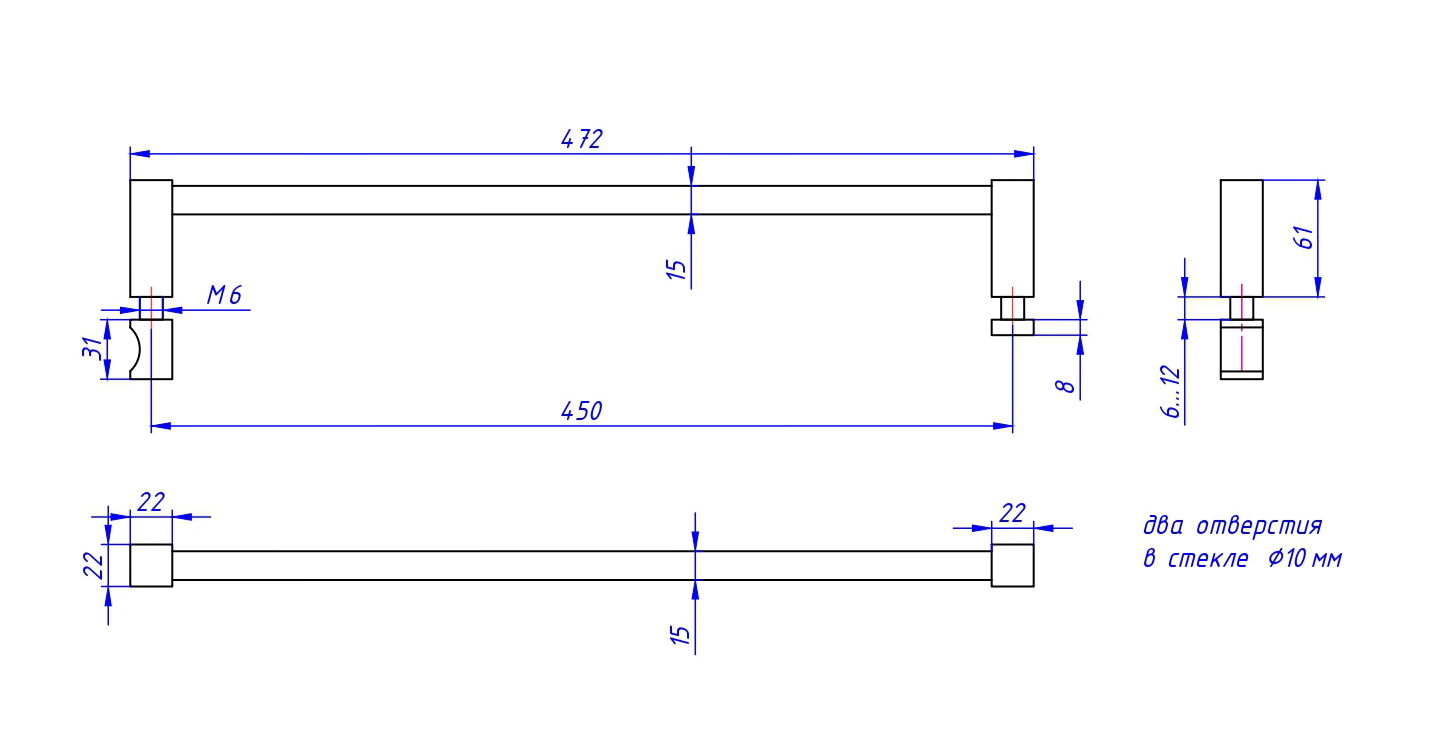 Для стекла толщиной 6-12мм, нержавеющая сталь. Межосевое расстояние 450мм.