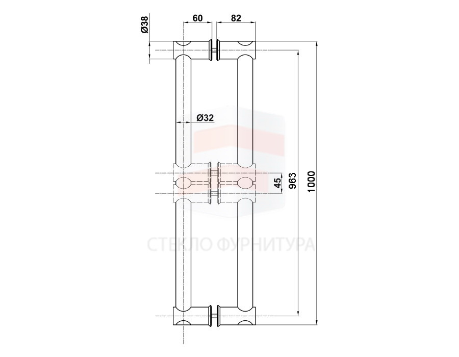 Ручка с регулируемым межосевым расстоянием комплект. Для стекла 8-12мм.