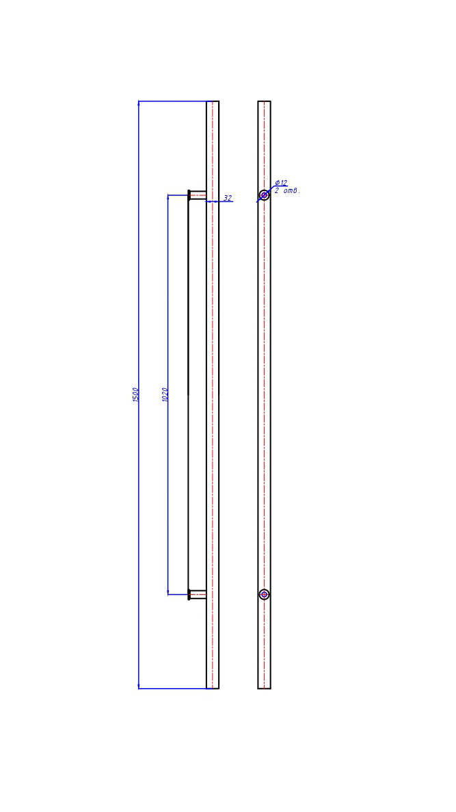 Ручка 32х1020х1500 для стекла 8-12мм.